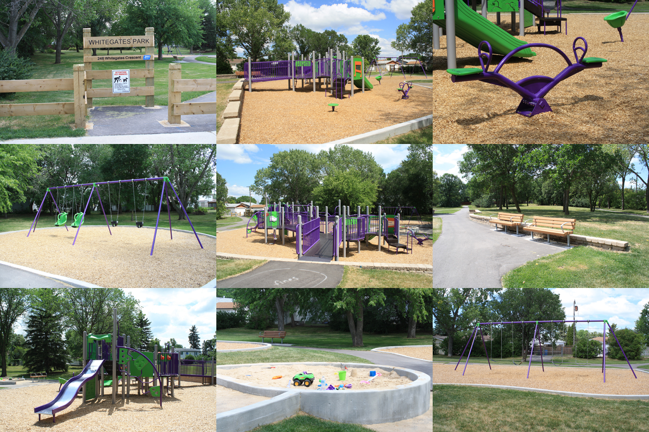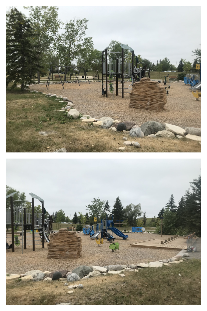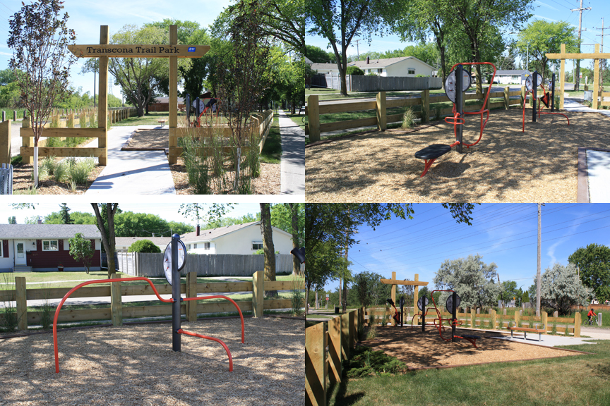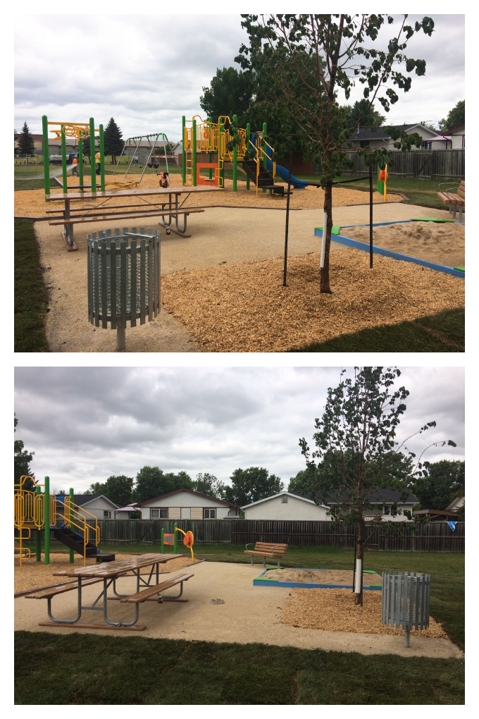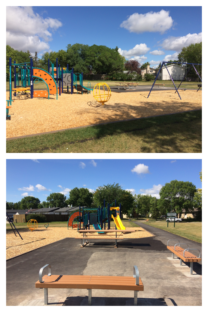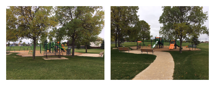 New granular path and fitness node (Voyageur Park) and new sod (Voyageur Park and Bernadine Stradford Park), additional small play area with swings, two spring toys and sandbox