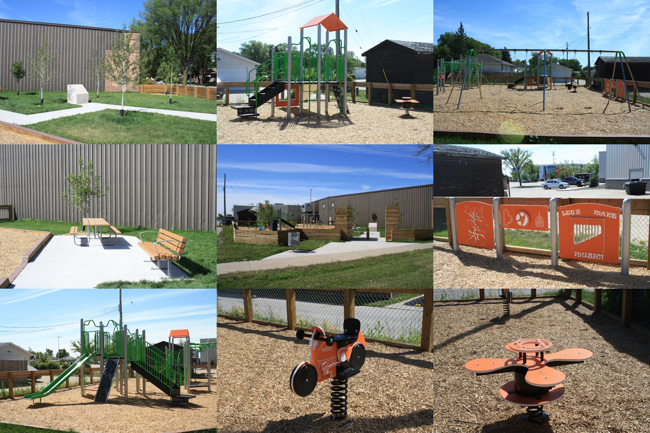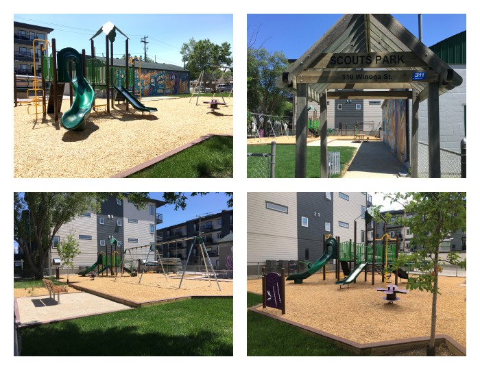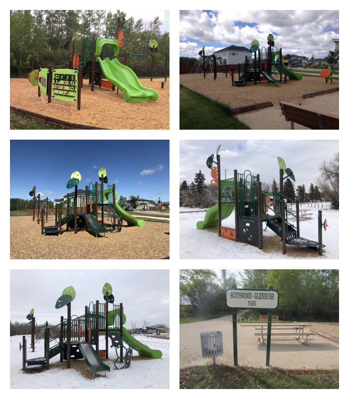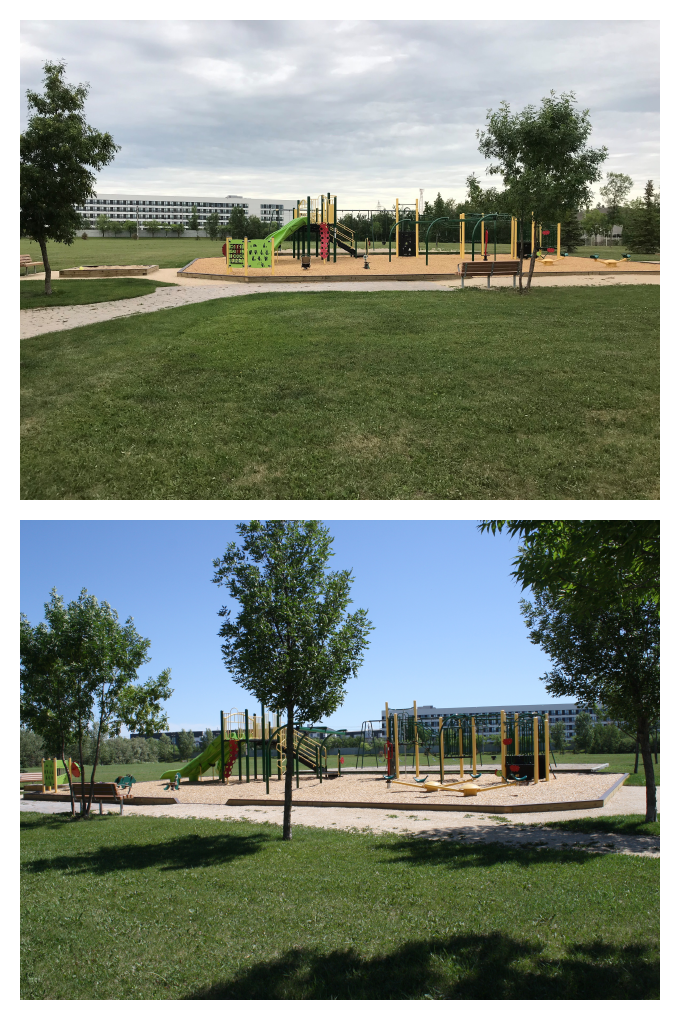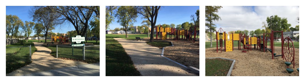 New granular path and fitness node (Voyageur Park) and new sod (Voyageur Park and Bernadine Stradford Park), additional small play area with swings, two spring toys and sandbox